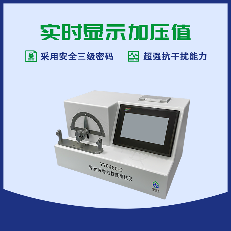 YY0450-C導(dǎo)絲抗彎曲性能測試儀是國家檢驗生產(chǎn)廠家產(chǎn)品性能的高效檢測設(shè)備。由可編程控制器,觸摸屏,力值傳感器,傳動裝置,機載打印機等組成,提供中英文菜單顯示,設(shè)定了人機對話各項參數(shù)自動運行測試模式。