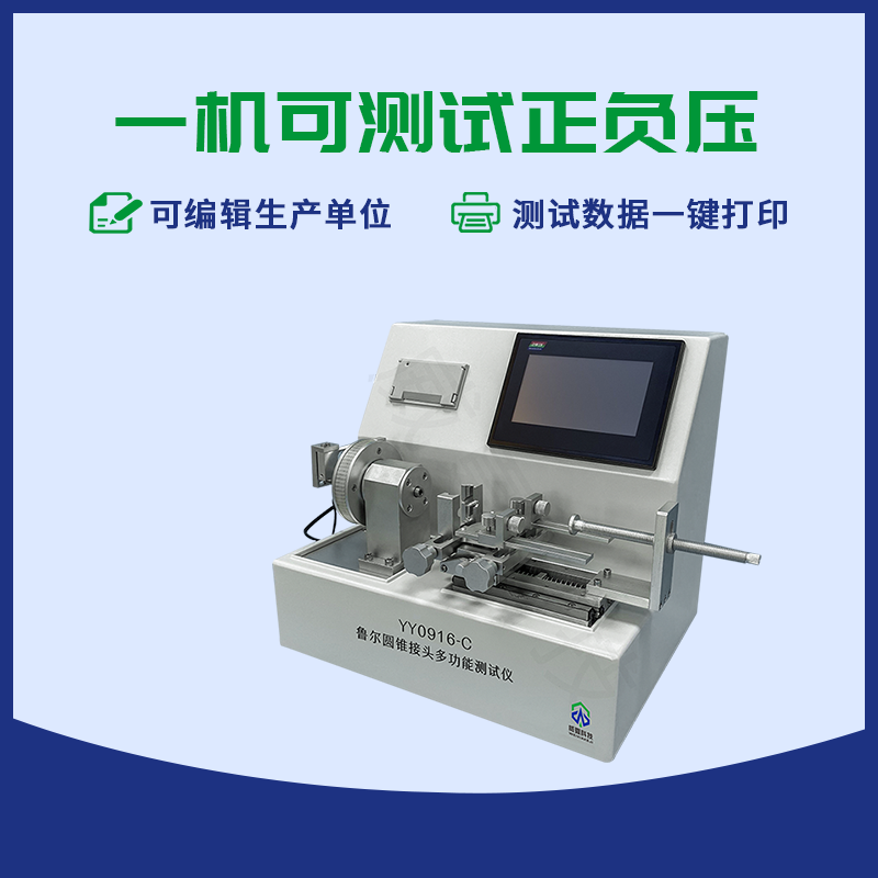 YY0916-C魯爾圓錐接頭綜合測(cè)試儀主要用于測(cè)定魯爾接頭漏液、漏氣、分離力、旋開(kāi)扭矩、易裝配性、抗滑絲性、抗過(guò)載性、應(yīng)力開(kāi)裂、壓力衰減泄漏、正壓液體泄漏、負(fù)壓空氣泄漏等各項(xiàng)性能。
