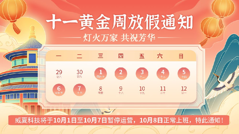 2025年威夏科技國慶節(jié)、中秋節(jié)放假通知